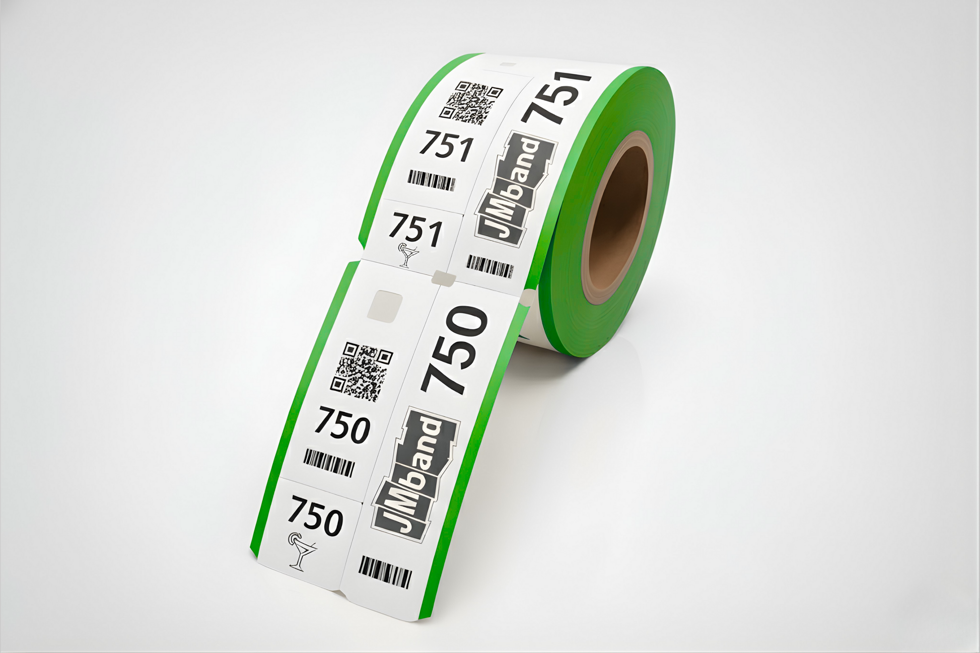 Diseña Online tus tickets de guardarropaDiseña Online, ahorra tiempo y costes. Cantidad mínima: 1 rollo - 1000 tickets de guardarropa. Rollos de 1000 X 3 billetes (Tres partes). Numerados secuencialmente + código de barras. Material: papel térmico de alta calidad. Tiempo de producción: máx. 3 días.